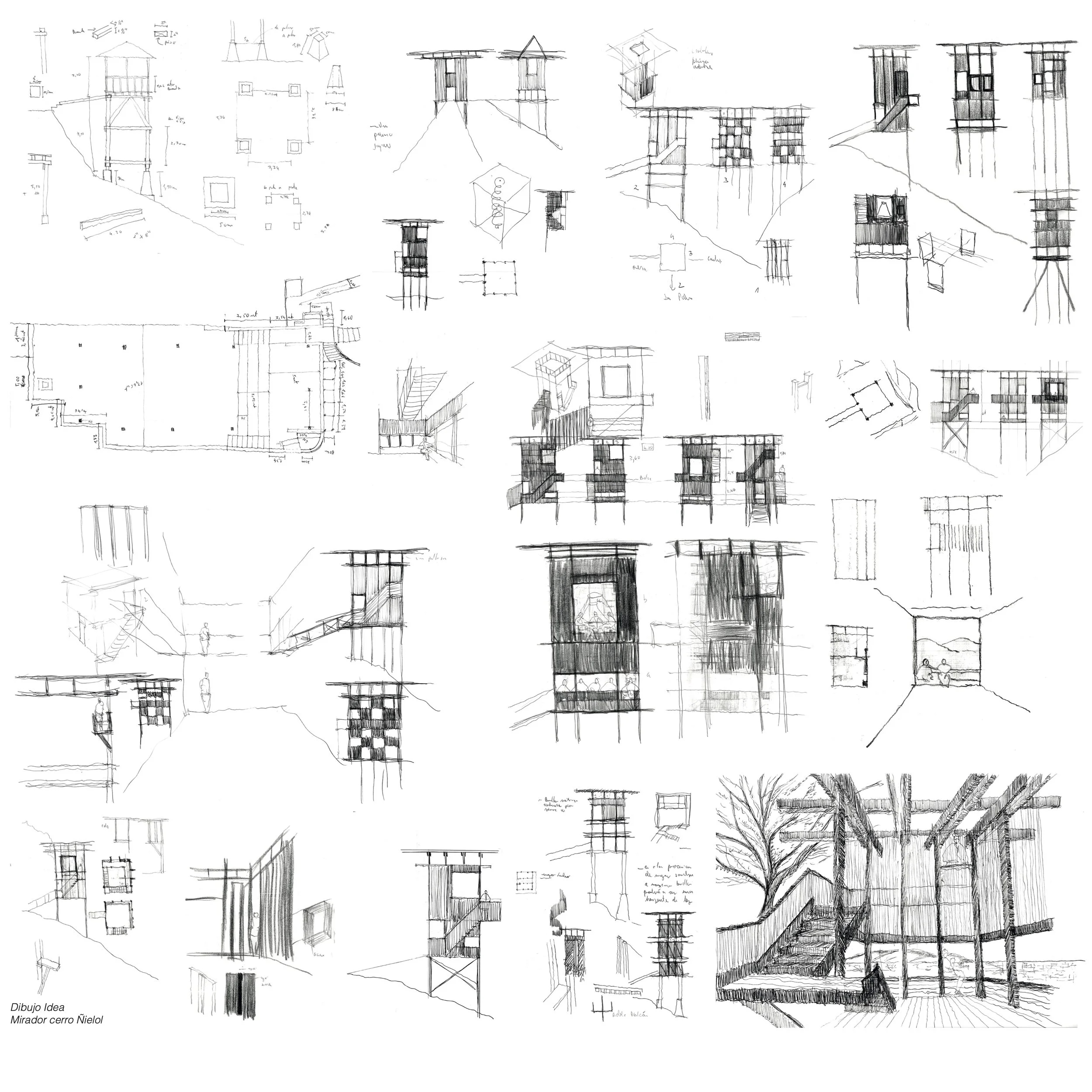Ñielol Lookout Idea Sketches. Jaime Inostroza.