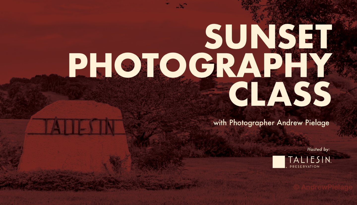 Join internationally published travel and architectural photographer, Andrew Pielage, at Taliesin, to learn the basics of sunset photography hands-on!